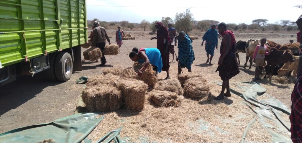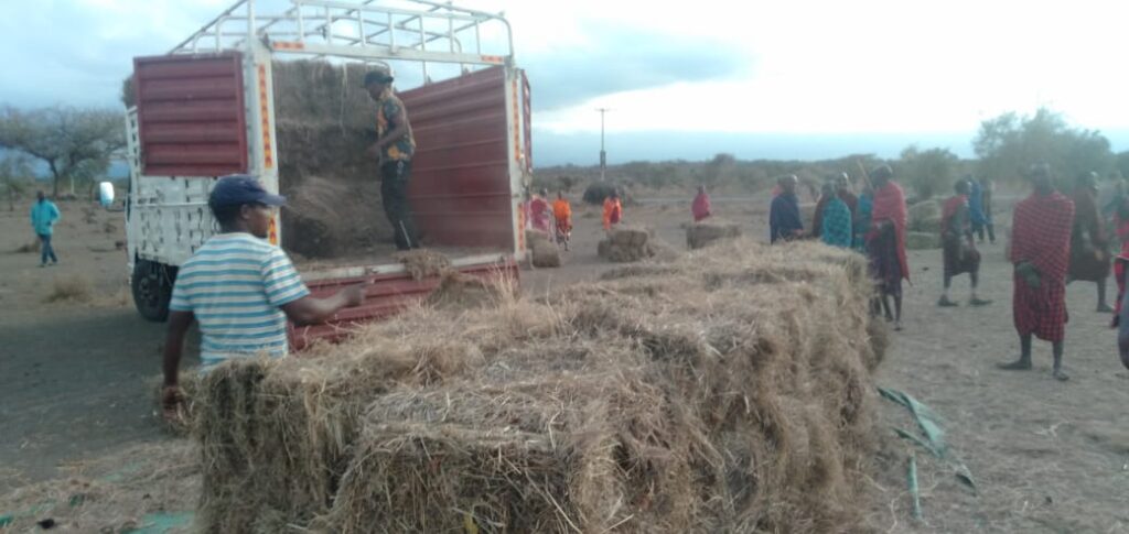 Wir hatten die Hoffnung, dass der Regen wie seit Jahrzehnten im November einsetzen würde. Bis heute fiel jedoch noch kein Tropfen, und so haben wir die Aktion noch einmal wiederholt. Der erste heubeladene LKW, der für uns bestimmt war, wurde unterwegs von verzweifelten Tierhaltern ausgeräumt, der zweite erreichte Gott sei Dank den Marktflecken Kimana, wenn auch mit erheblicher Verspätung.